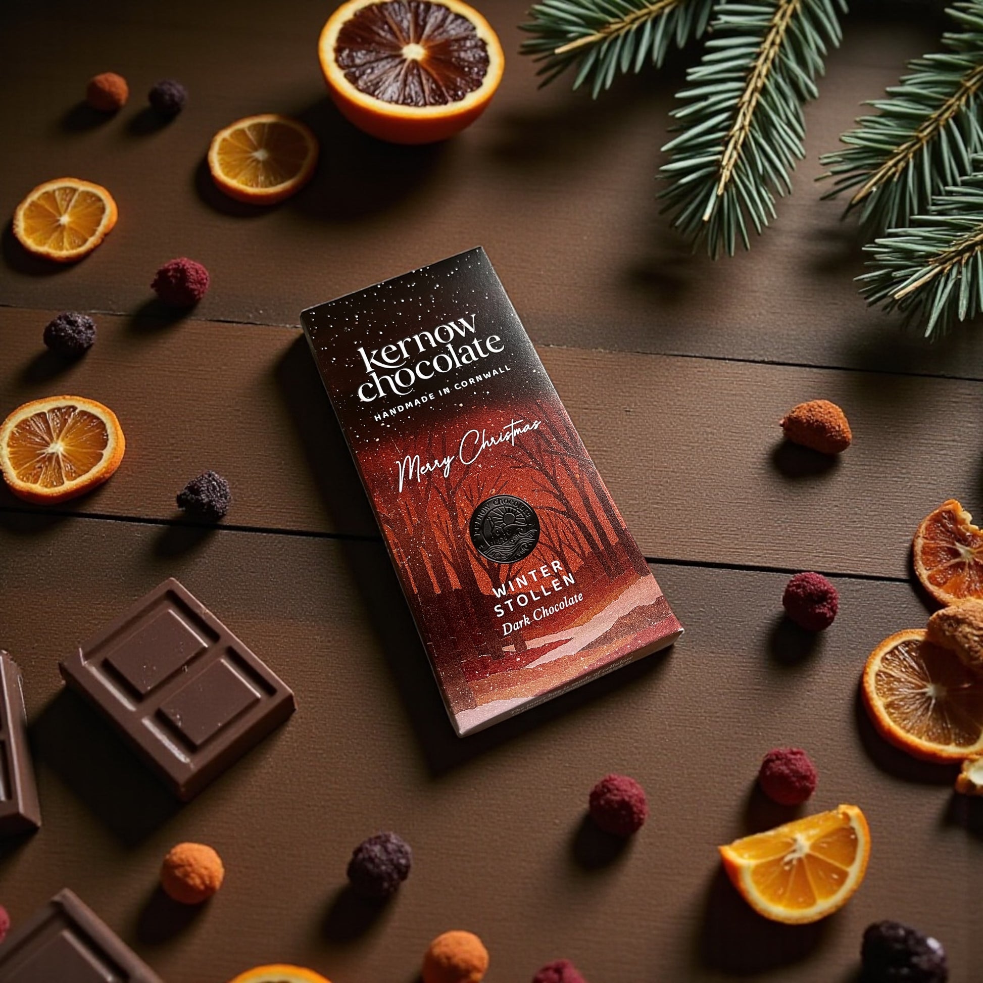 Winter Stollen Dark Chocolate Cornish Chocolate Bar – The Extraordinary Cornish Chocolate Gift